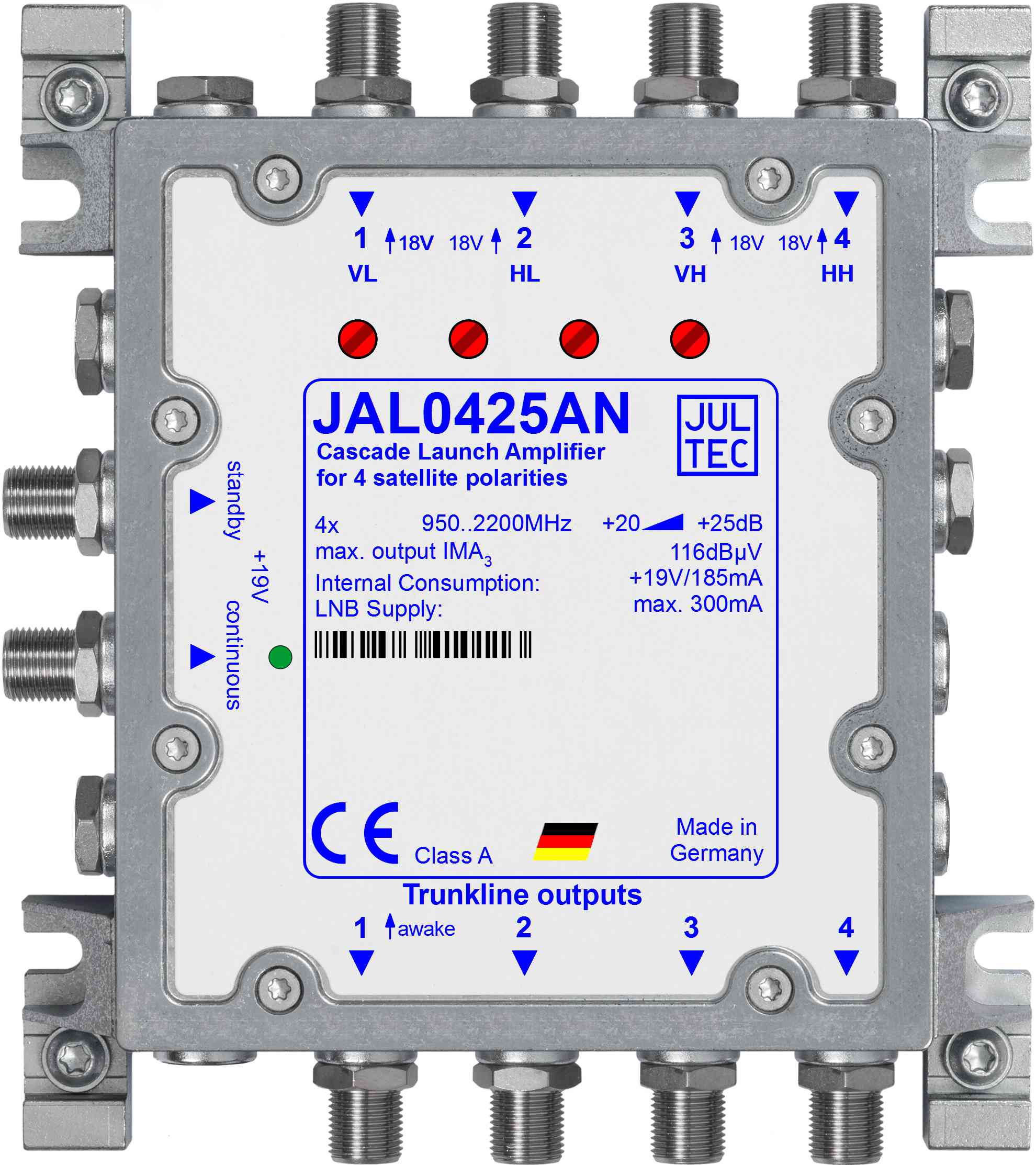 | Sat-Verstärkung 950 .. 2200 MHz | 4 x + 12 .. + 15 dB | 4 x + 20 .. + 25 dB |