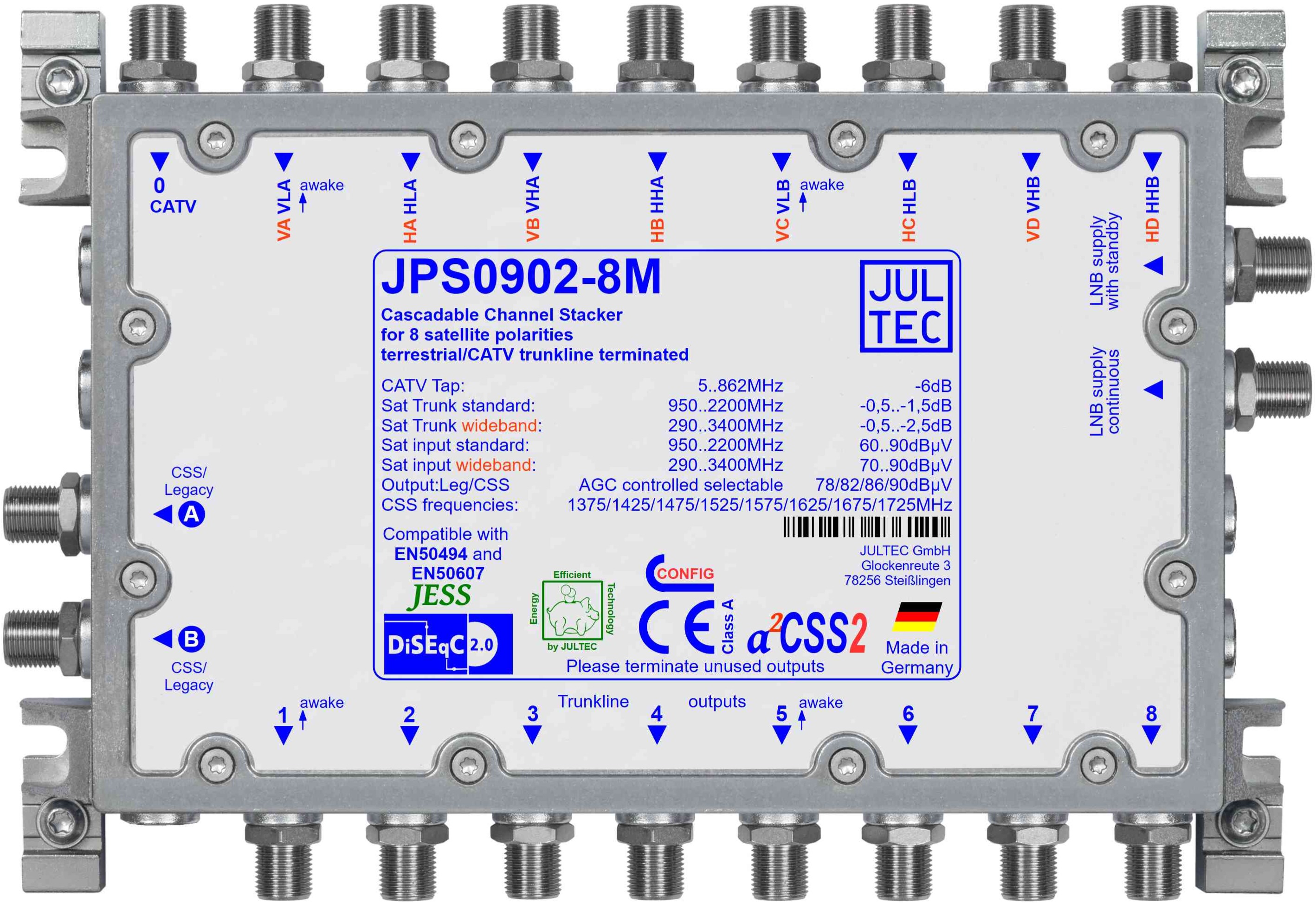 | Stammleitung 950..2200 MHz | 8 x - 0,5..- 1,5 dB |