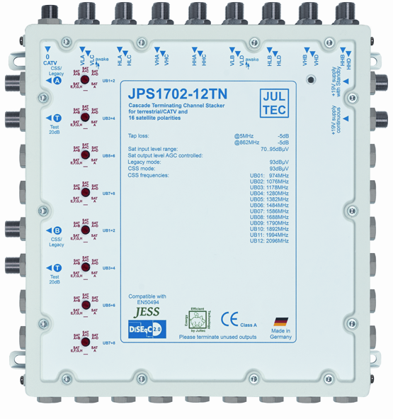 | Einkabelfrequenzen 2 x | 974MHz, 1076MHz, 1178MHz, 1280MHz, 1382MHz, 1484MHz, 1586MHz, 1688MHz, 1790MHz, 1892MHz, 1994MHz, 2096MHz | |
