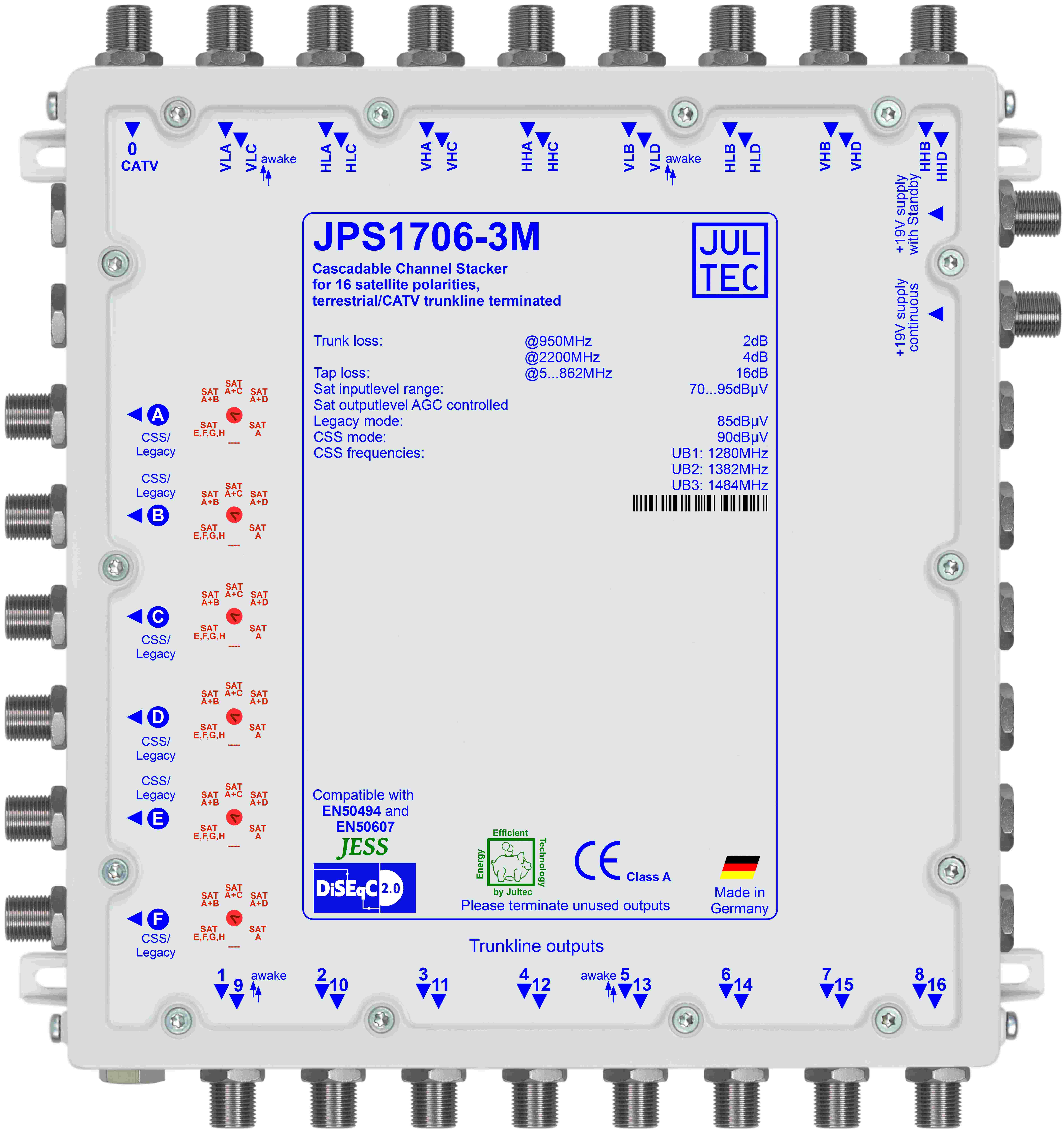 | Einkabelfrequenzen 8 x | 1280MHz, 1382MHz, 1484MHz | ||