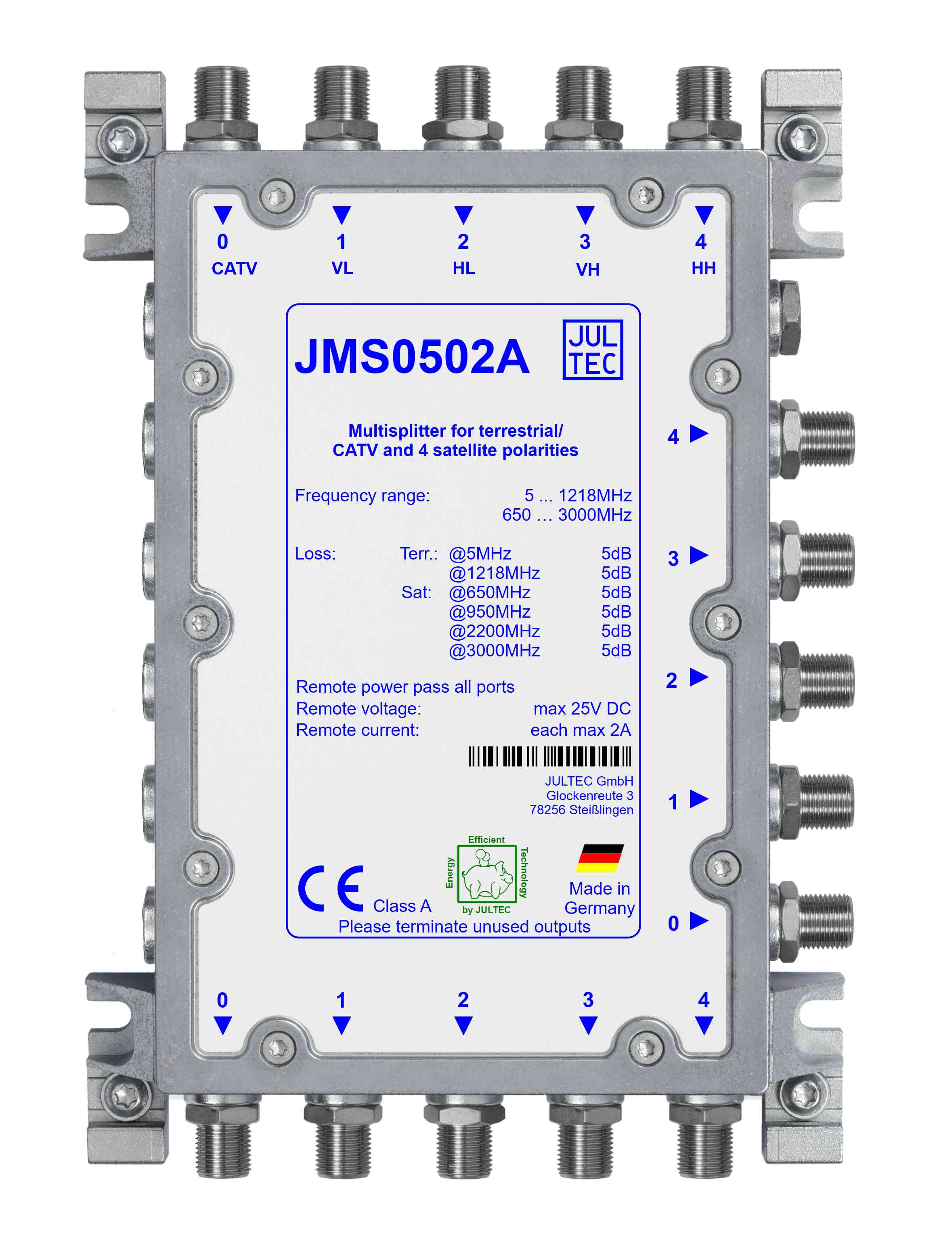 | Schirmung/EMV | CE (EN 60728-2), Klasse A | ||||