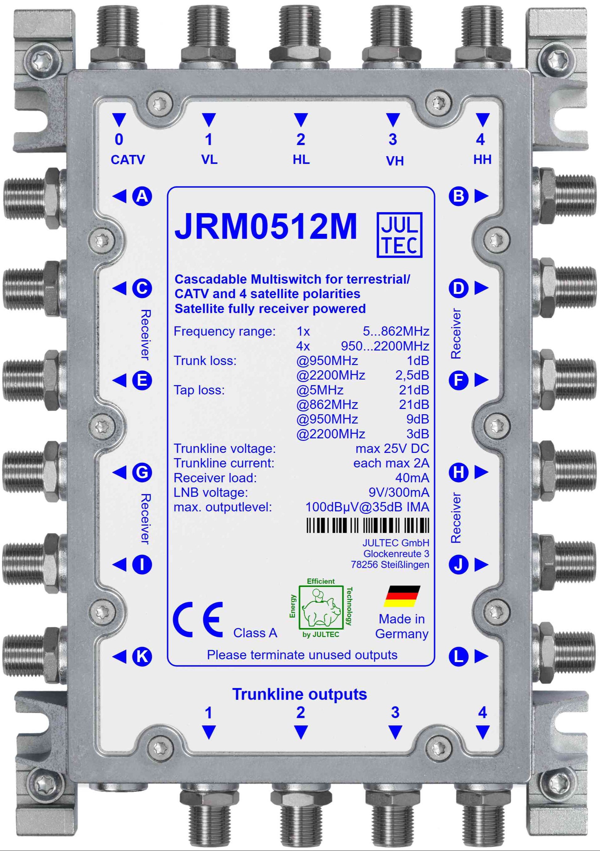 | Max. Ausgangspegel Sat | 100 dBµV @ 35 dB IMA (88 dBµV Vollband) | |
